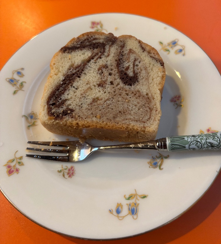 ラム酒が入ったマーブルケーキ🍰もう彼女も10年ぐらいコツコツお菓子作りを現実化しています😊たまたま私はずっとそれをご馳走になってます😊でも彼女がいつかお菓子屋さんをやるのは自然すぎるくらい自然な事になっていると思います。コツコツやる、誰かが見ている これは宇宙がこの現実を映しださざるおえない状況です。いろいろ動きそうですね😊楽しみです✨✨